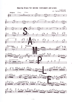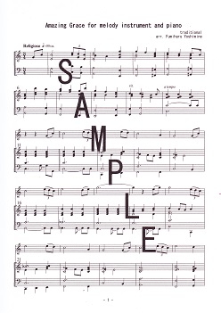 アルトリコーダー(またはその他の旋律楽器)とピアノのための「アメージング・グレース」 楽譜(スコア:7ページ)PDFファイル 900円