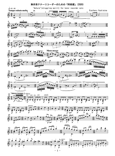 sheet music "Ashura"(struggling spirit) for tenor recorder solo