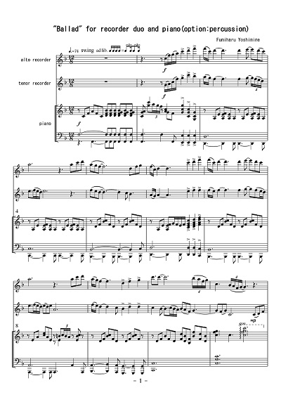 sheet music "Ballad" for recorder duo and piano(option:percussion) (PDF)