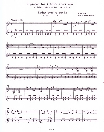 Bela Bartok 7 pieces for 2 tenor recorders(original:44 pieces for violin