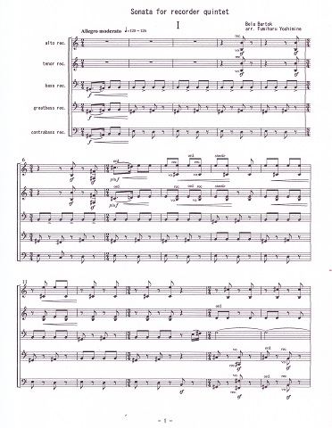Bela Bartok Sonata for recorder quintet(alto, tenor, bass, greatbass and
