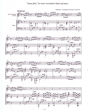 "Danny Boy" for tenor recorder(or flute)and piano (PDF)