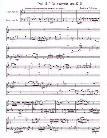 sheet music "Kai III for recorder duo(tenor and bass)2019(PDF)