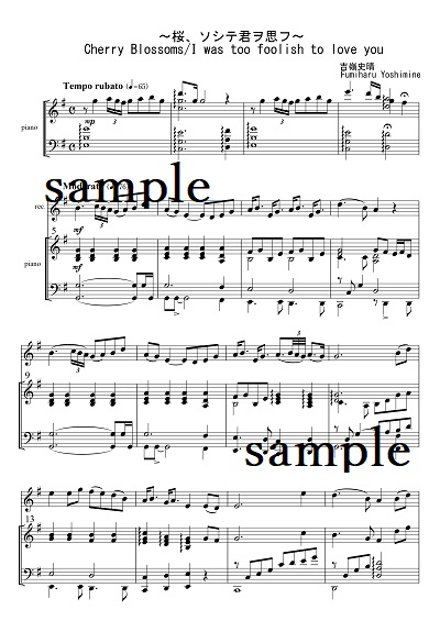Fumiharu Yoshimine "Cherry Blossoms/I was too foolish to love you"sheet music(PDF), play-along recording(WAV.)