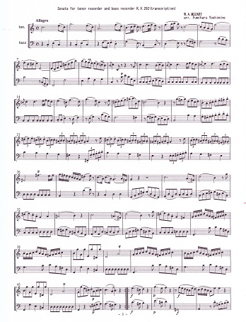 shee music W.A.Mozart Sonata for recorder duo(tenor and bass recorder)K.V.292(PDF)