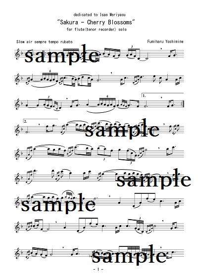 ""Sakura-Cherry Blossoms" for flute(tenor recorder) solo"(PDF)